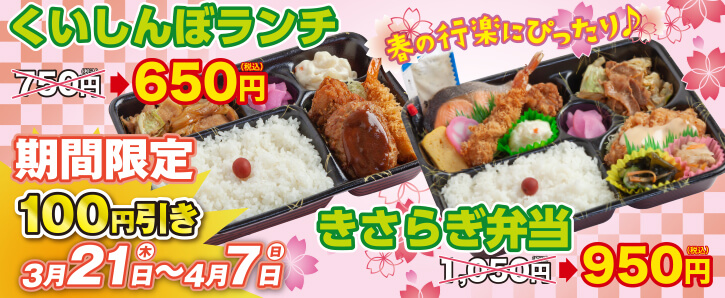 くいしんぼランチときさらぎ弁当が、なななんと100円引き!